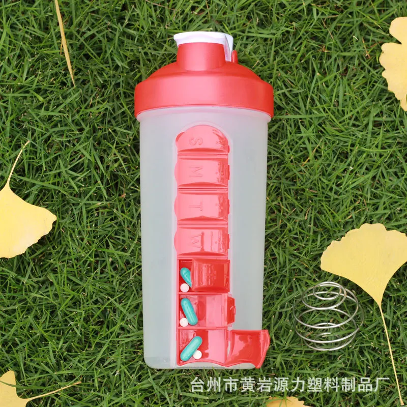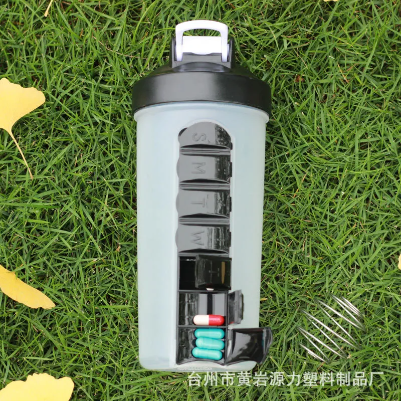 Quelle Fabrik Sport Mischbecher 600ML Shaker Becher mit Tragegriff Sport Fitness 7 Tage 7 Tage Pillendose Shaker Becher