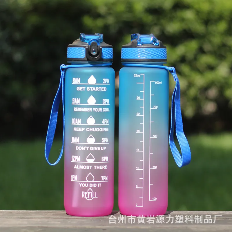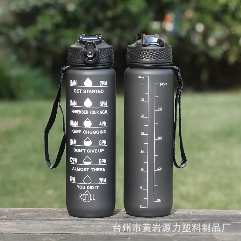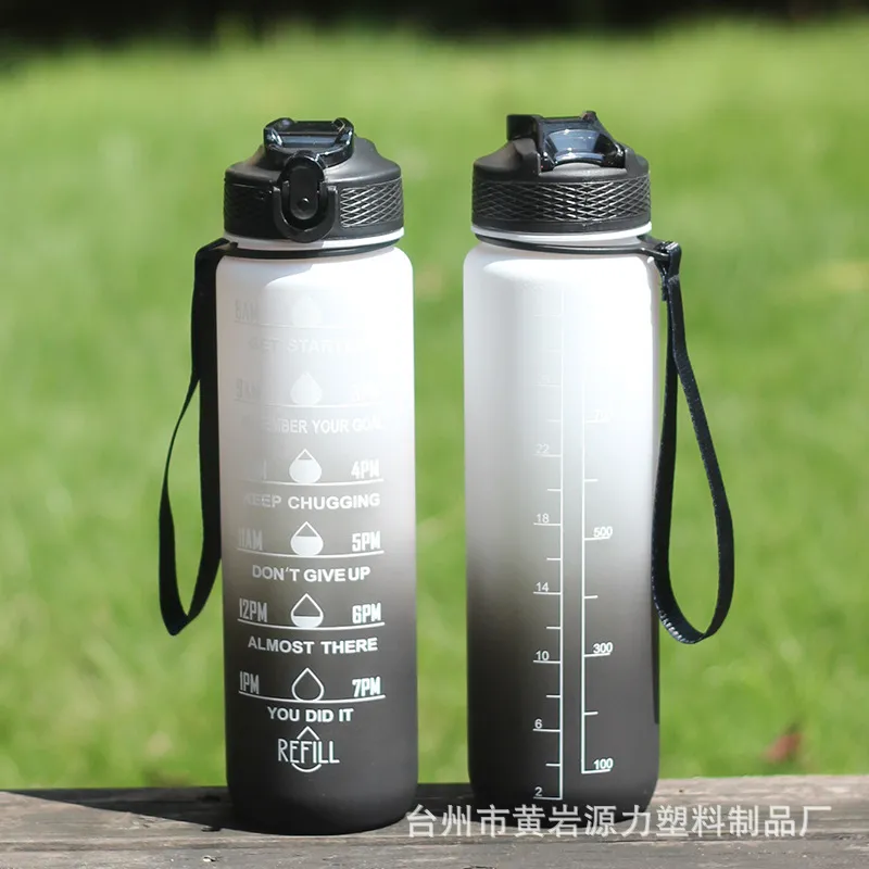Spot 1000ML Amazon TRITAN Kunststoff-Wasserflasche Pop-up-Deckel mit Skala Strohhalm Sportbecher Space Mug